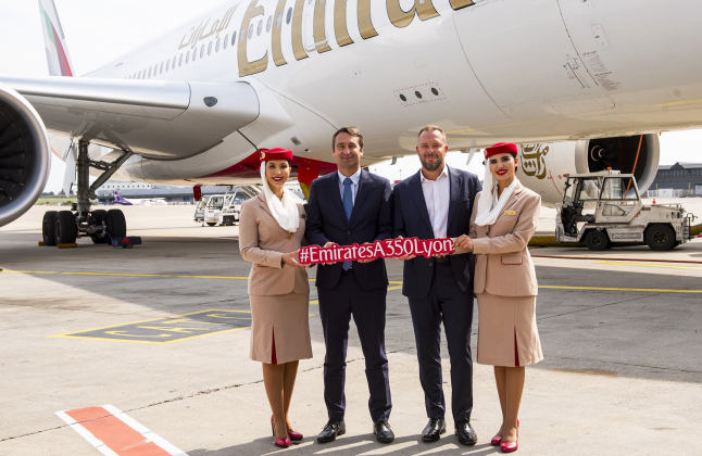 Présente depuis 2012 sur le tarmac de l’aéroport Lyon Saint-Exupéry, Emirates, qui est aujourd’hui la plus grande compagnie aérienne internationale au monde, vient de traduire une fois de plus l’importance qu’elle attache à la ligne régulière Lyon - Dubaï. Depuis le 1er juin, en effet, c’est le nouvel Airbus A350 de la compagnie qui opère cette liaison. À ce jour, la capitale des Gaules est la seule destination desservie par ce tout nouvel appareil dans l’Hexagone et la seconde en Europe.